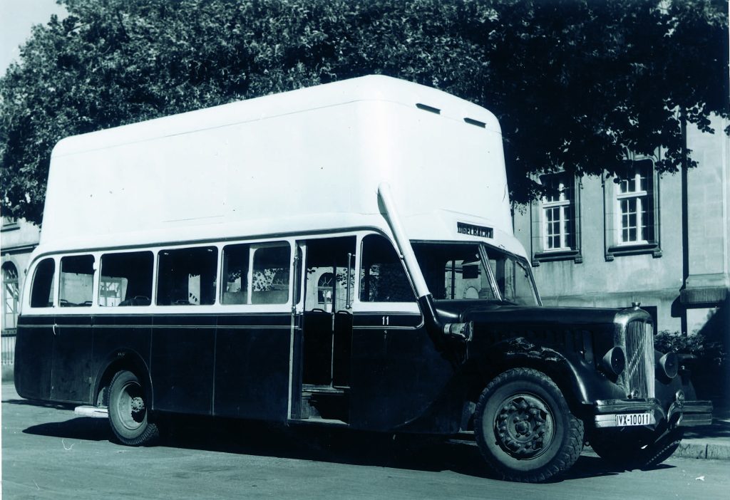 Le premier autobus colmarien, un ancien camion recarrossé, circulait sur la ligne Colmar – Logelbach en 1926.